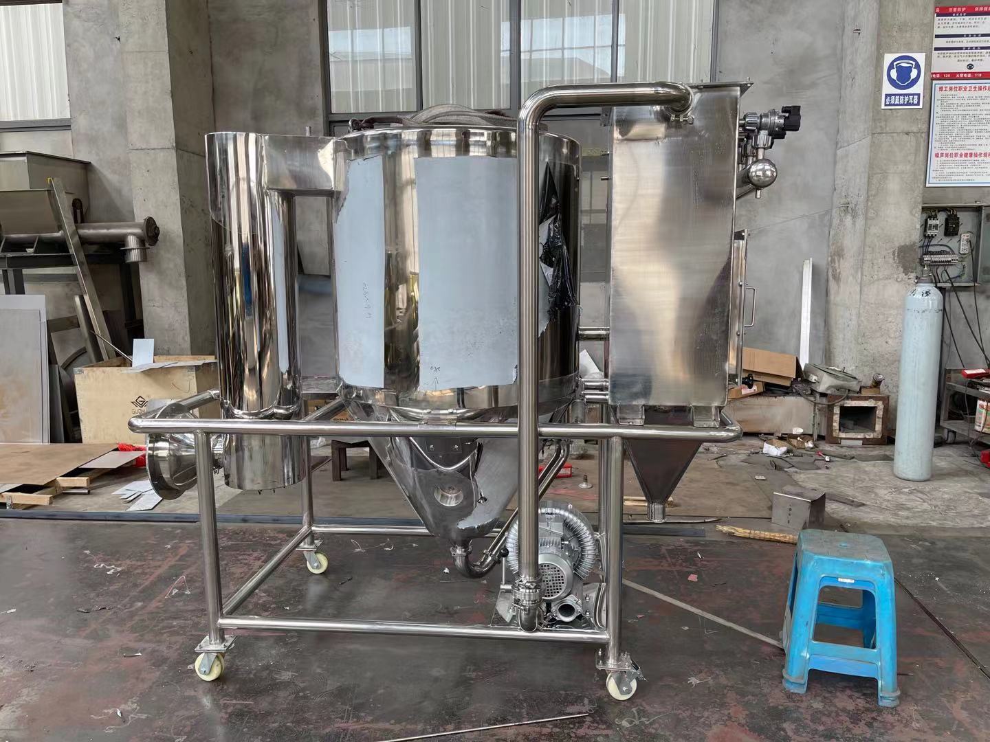 產(chǎn)品描述:該機(jī)采用全封閉形式,所有部件均采用不銹鋼制造,配有三級(jí)凈化裝置,過濾后的空氣達(dá)到要求 。簡(jiǎn)體與頂部裝有冷壁裝置,使壁溫<80℃,物料在壁上停留也不焦化變質(zhì)現(xiàn)象,增加了收粉率(達(dá)95%以上),而且不會(huì)產(chǎn)生混藥現(xiàn)象和粘壁現(xiàn)象。