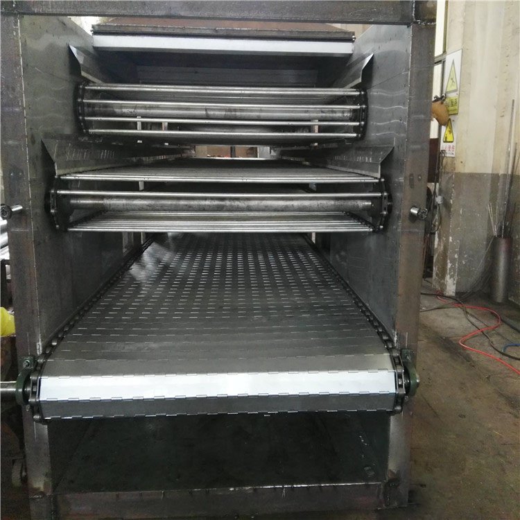 該機(jī)是穿流連續(xù)式干燥設(shè)備,用于透氣性較好的片狀、條狀、顆粒狀物料的干燥,對(duì)于脫水蔬菜、中藥飲片等類含水率高、而溫度不允許高的物料尤為合適;該系列干燥機(jī)具有干燥速度快、蒸發(fā)強(qiáng)度高、產(chǎn)品的質(zhì)量好的優(yōu)點(diǎn),對(duì)脫水濾餅狀的膏狀物料,需經(jīng)造?;蛑瞥砂魻詈笠嗫筛稍?。